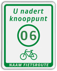 When a node cycling system is signposted, using it is simply a matter of following signs with a number on them. We distinguish between a number of standardised signs. The below images show examples of how they are used in the Netherlands.