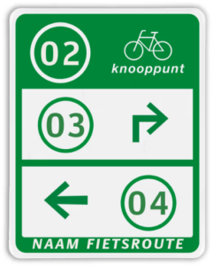 Jeśli sieć węzłów rowerowych jest oznakowana, korzystanie z niej jest po prostu kwestią podążania za znakami z numerem. Rozróżniamy kilka standardowych znaków. Poniższe zdjęcia przedstawiają przykłady ich zastosowania w Holandii.